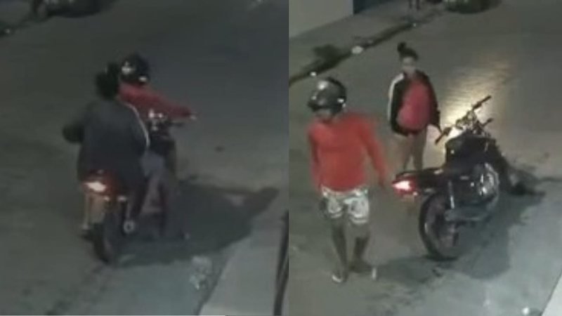 As imagens mostram a dupla chegando ao local em uma motocicleta. O homem desce do veículo já com o capacete na cabeça e entra rapidamente na farmácia, enquanto a mulher permanece do lado de fora aguardando para facilitar a fuga. Menos de dois minutos depois, ele retorna apressado e sobe na moto, deixando a região.