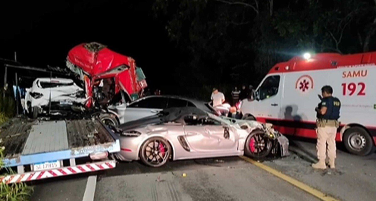 De acordo com a Polícia Rodoviária Federal (PRF), o acidente ocorreu na noite de terça-feira (28). O caminhão-guincho transportava uma Porsche, uma BMW e um Ônix. A colisão aconteceu em uma região conhecida como Ladeira do Varela.