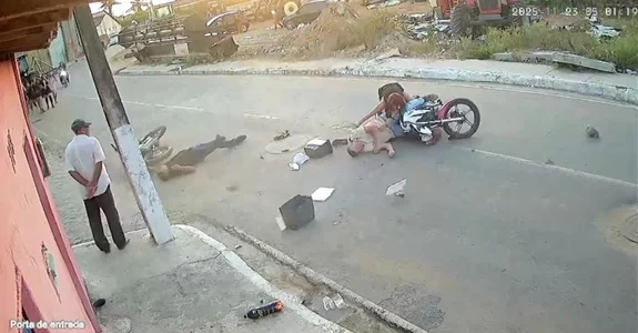 As imagens mostram o momento em que os veículos se chocam. Em uma das motos estavam um homem e uma mulher; na outra, apenas o condutor. Moradores que presenciaram o impacto correram para ajudar as vítimas antes da chegada do socorro especializado.