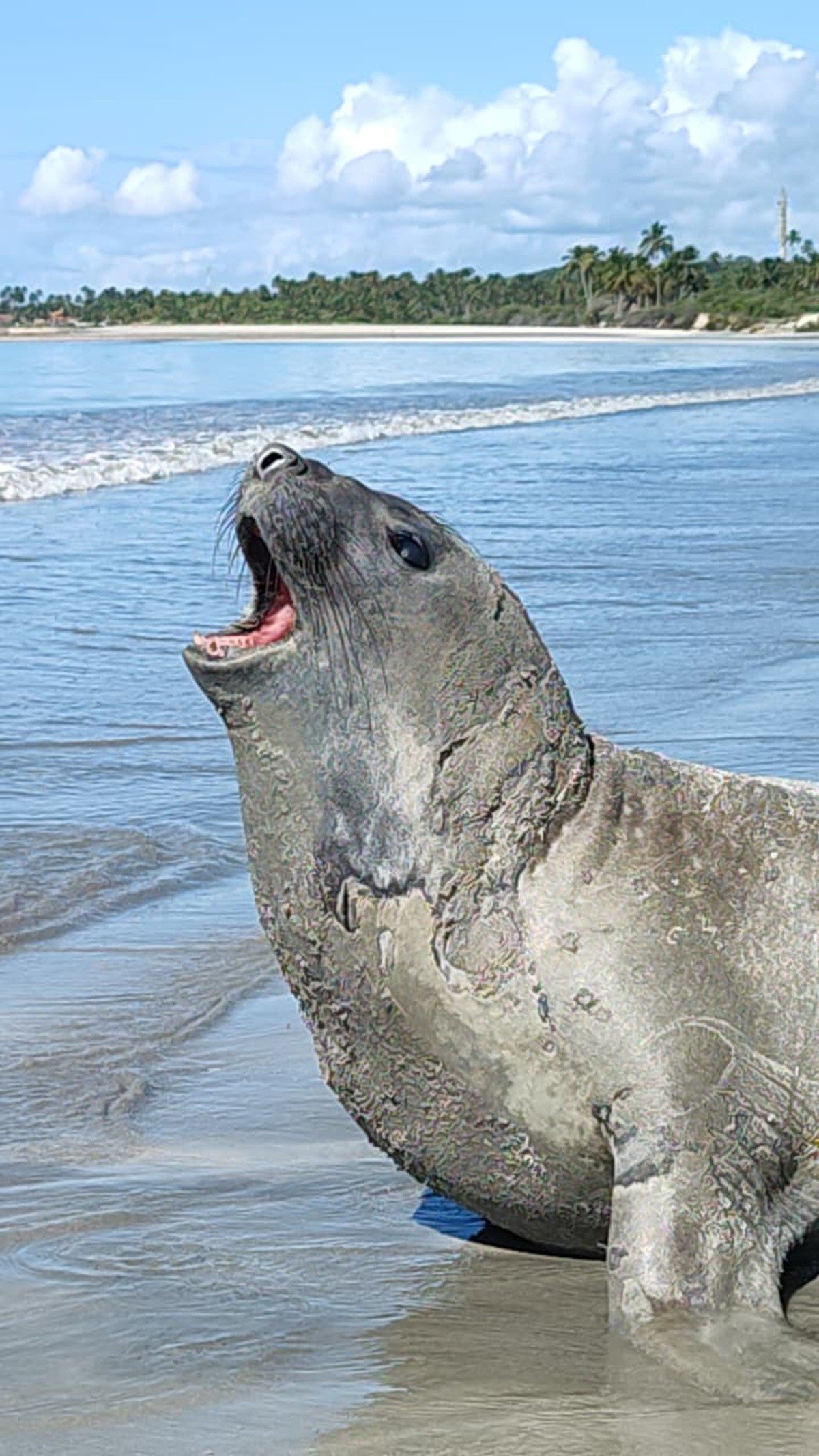Um elefante-marinho foi avistado nesta terça-feira (18) nas praias de Maceió, após ter sido observado em Barra de Santo Antônio e Paripueira, no Litoral Norte de Alagoas, nos dias anteriores. O Instituto Biota de Conservação decidiu não revelar a localização exata do animal para evitar a aproximação de curiosos. O monitoramento do elefante-marinho começou em 11 de março e, segundo o instituto, ele deve permanecer na área por mais alguns dias.
