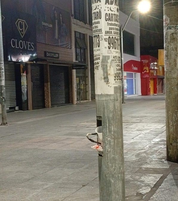 No calçadão do comércio, também foram constatados danos nos postes de iluminação, utilizados de forma ilegal para o furto de energia elétrica. Segundo a Ilumina, além de gerar custos para o poder público, essa prática representa risco de choque elétrico tanto para os responsáveis pelo crime quanto para pedestres que circulam pela região.