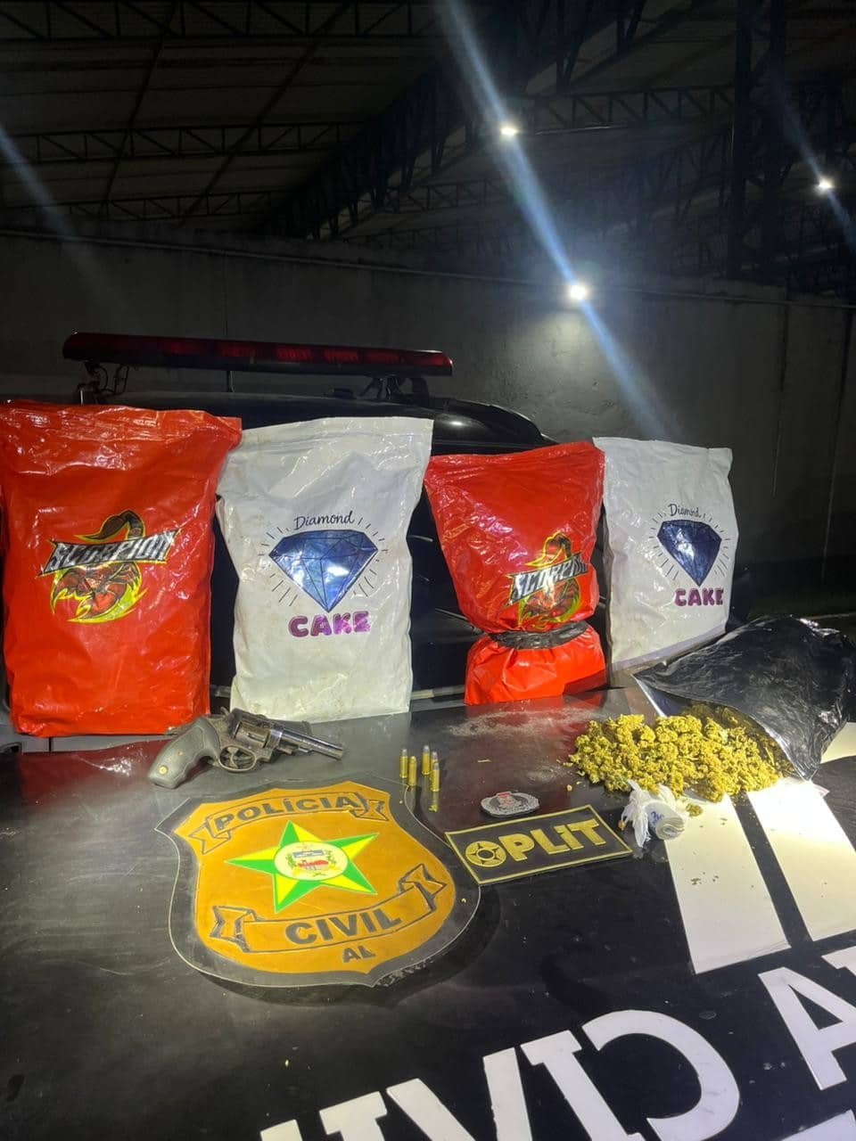 A Polícia Civil de Alagoas efetuou a prisão de um homem suspeito de envolvimento em tráfico de drogas no bairro Jacintinho, em Maceió, na noite do último domingo (1). Durante a operação, foram encontrados aproximadamente 3 kg de maconha, um revólver calibre .38 e cinco munições. A identidade do detido não foi divulgada pelas autoridades.