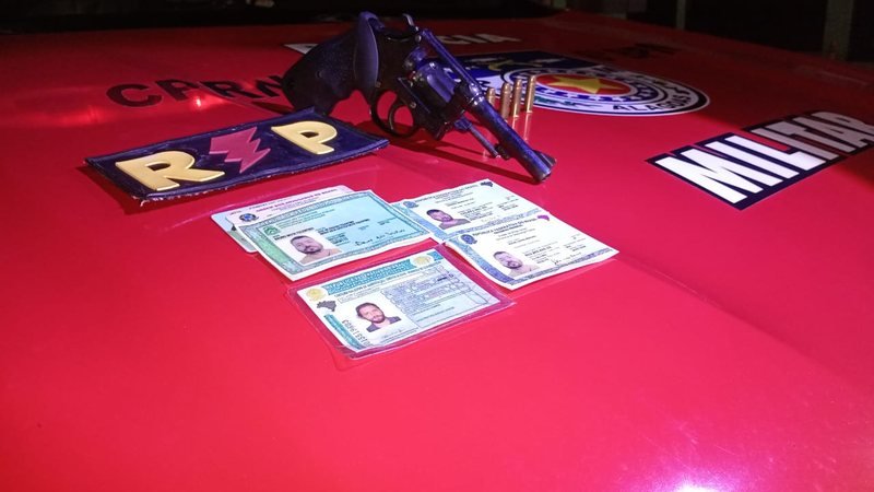 O homem foi encontrado dentro de um veículo, onde os policiais localizaram um revólver com quatro munições, substâncias entorpecentes e diversos documentos que, segundo a PM, eram falsificados. Também foram apreendidos documentos originais pertencentes a outras pessoas e duas porções de cocaína conhecidas como “bombinhas”.