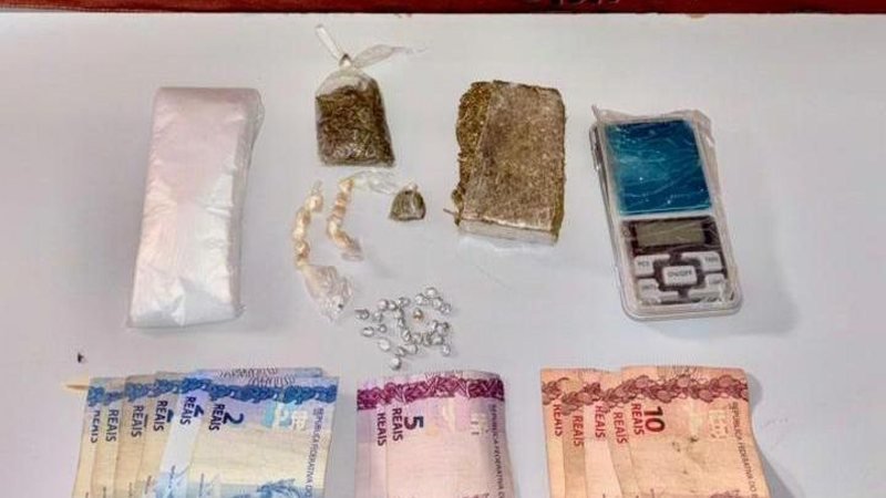 Durante a revista pessoal, os policiais encontraram um papelote de maconha e 37 pedras de crack. As buscas continuaram nas imediações e, perto de uma cerca de arame farpado, foram localizados mais materiais ilícitos, além de uma balança de precisão, instrumentos comumente usados na comercialização de drogas. Ao todo, foram apreendidos 3 gramas de crack, 120 gramas de maconha e R$ 83 em dinheiro.