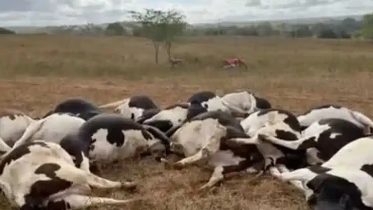 Rompimento de fio de alta tensão mata 27 vacas em fazenda no município de Batalha, em Alagoas